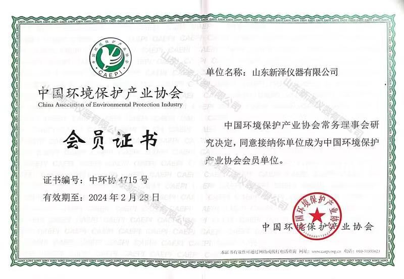 通過(guò)嚴(yán)格的資料審核以及業(yè)績(jī)?cè)u(píng)估,山東新澤儀器有限公司經(jīng)中國(guó)環(huán)境保護(hù)產(chǎn)業(yè)協(xié)會(huì)常務(wù)理事會(huì)研究決定,正式成為中國(guó)環(huán)境保護(hù)產(chǎn)業(yè)協(xié)會(huì)會(huì)員單位。