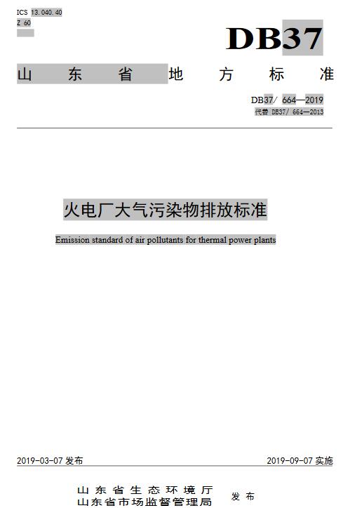 山東:火電廠大氣污染物排放標準(DB37/ 664—2019)