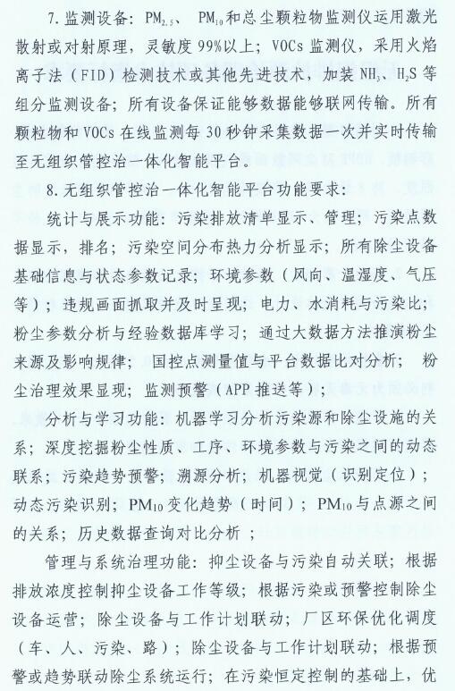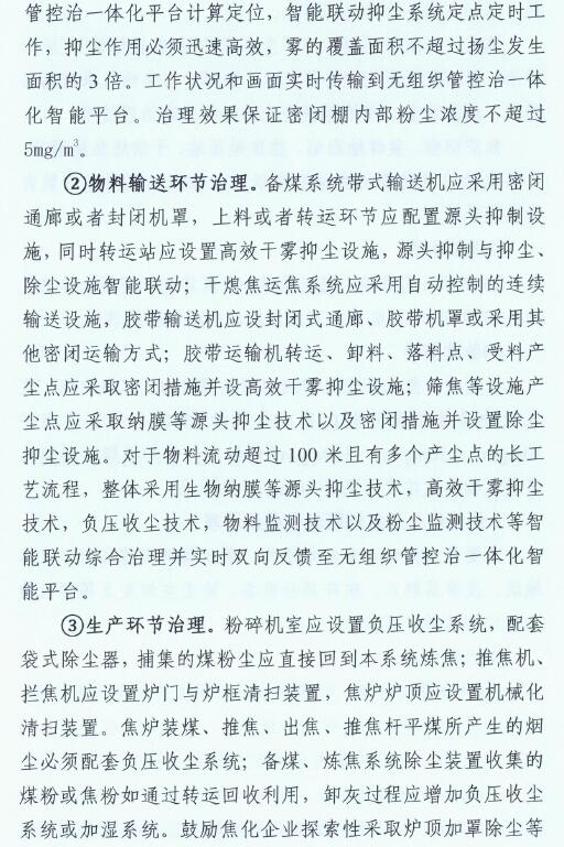 2、2019年10月底前,全市焦化企業(yè)全面完成無組織排放治理和監(jiān)測(cè)、無組織排放管、控、治一體化智能平臺(tái)建設(shè)。