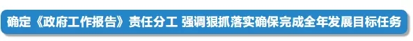 會(huì)議將《政府工作報(bào)告》提出的重點(diǎn)任務(wù)逐項(xiàng)分解,明確責(zé)任單位和時(shí)限,要求國務(wù)院各部門以對(duì)人民高度負(fù)責(zé)的精神,不折不扣抓好落實(shí),奮力完成全年經(jīng)濟(jì)社會(huì)發(fā)展主要目標(biāo)任務(wù)。