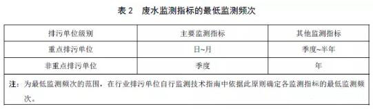 注:為最低監(jiān)測頻次的范圍,分行業(yè)排污單位自行監(jiān)測技術(shù)指南中依據(jù)此原則確定各監(jiān)測指標的最低監(jiān)測頻次。