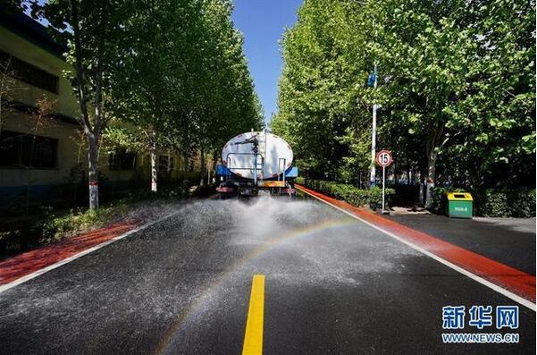 4月23日,灑水車在位于河北省沙河市的河北鑫利玻璃有限公司廠區(qū)內(nèi)灑水防塵。 2019年起,有“中國(guó)玻璃城”美譽(yù)的河北沙河市啟動(dòng)了“煙羽消白”工程,先后投入20億元對(duì)在產(chǎn)玻璃生產(chǎn)線實(shí)施超低排放改造,并結(jié)合提升廠區(qū)環(huán)境、優(yōu)化產(chǎn)能等措施,削減粉塵、二氧化硫、氮氧化物等污染物排放,推進(jìn)大氣污染治理。新華社記者 牟宇 攝