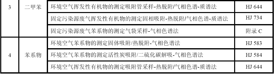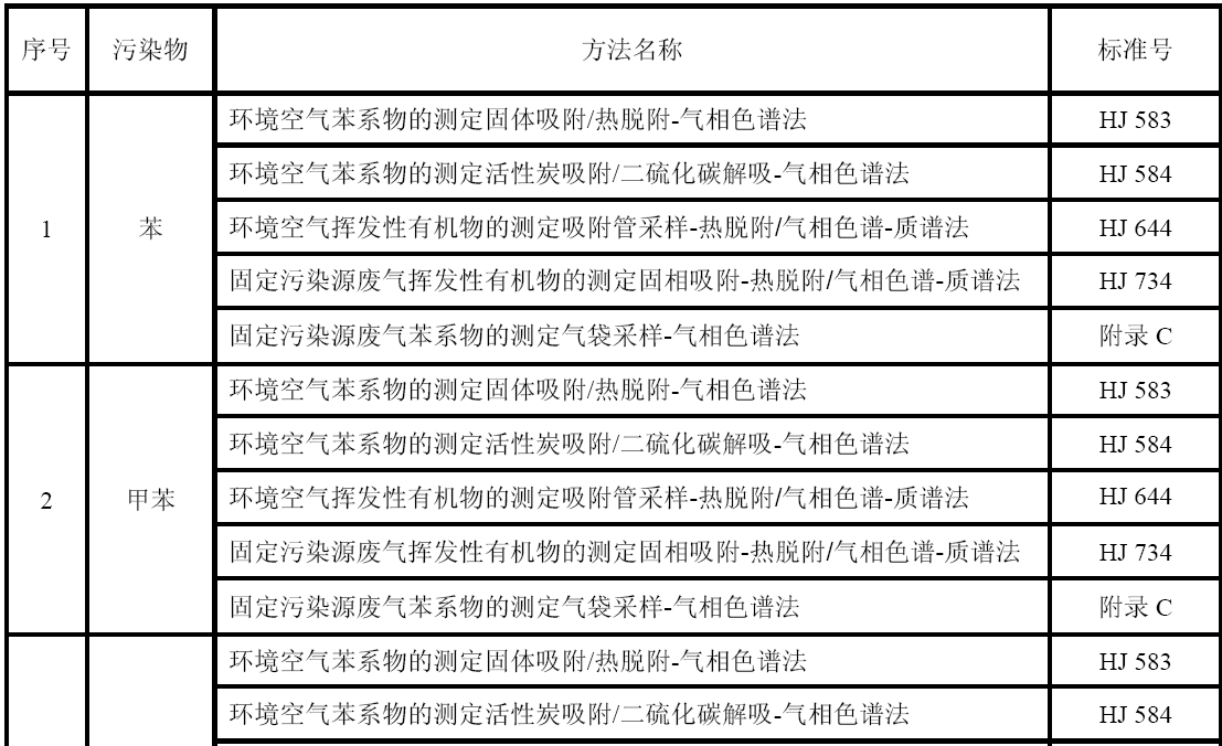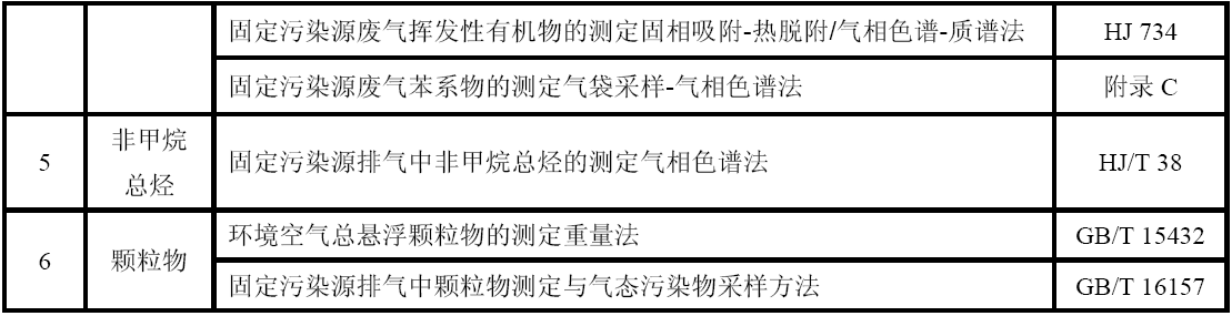 GB 16297 大氣污染物綜合排放標準 GB 24409 汽車涂料中有害物質(zhì)限量 GB/T 15089 機動車輛及掛車分類 GB/T15432 環(huán)境空氣總懸浮顆粒物的測定重量法 GB/T 16157 固定污染源排氣中顆粒物測定與氣態(tài)污染物采樣方法 HJ 583  環(huán)境空氣苯系物的測定固體吸附/熱脫附-氣相色譜法 HJ 584   環(huán)境空氣苯系物的測定活性炭吸附/二硫化碳解吸-氣相色譜法 HJ 644      環(huán)境空氣揮發(fā)性有機物的測定吸附管采樣-熱脫附/氣相色譜-質(zhì)譜法 HJ 732  固定污染源廢氣揮發(fā)性有機物的采樣氣袋法 HJ 734  固定污染源廢氣揮發(fā)性有機物的測定固相吸附-熱脫附/氣相色譜-質(zhì)譜法 HJ/T 38  固定污染源排氣中非甲烷總烴的測定氣相色譜法 HJ/T 55  大氣污染物無組織排放監(jiān)測技術(shù)導(dǎo)則 HJ/T 75   固定污染源煙氣排放連續(xù)監(jiān)測技術(shù)規(guī)范(試行) HJ/T 194  環(huán)境空氣質(zhì)量手工監(jiān)測技術(shù)規(guī)范 HJ/T 293  清潔生產(chǎn)標準汽車制造業(yè)(涂裝) HJ/T 397  固定源廢氣監(jiān)測技術(shù)規(guī)范 《建設(shè)項目環(huán)境保護設(shè)施竣工驗收監(jiān)測技術(shù)要求(試行)》(環(huán)發(fā)(2000)38號)