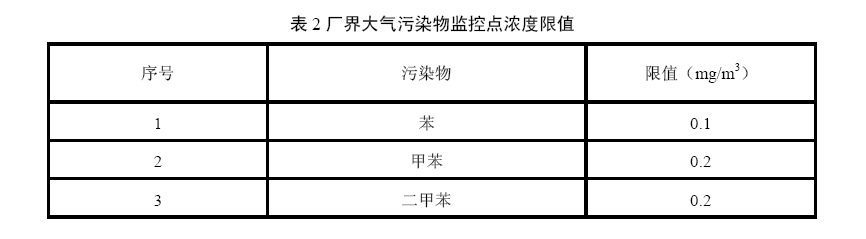 4.2.2廠界大氣污染物監(jiān)控點濃度限值 廠界大氣污染物監(jiān)控點污染物濃度限值應(yīng)符合表2規(guī)定。