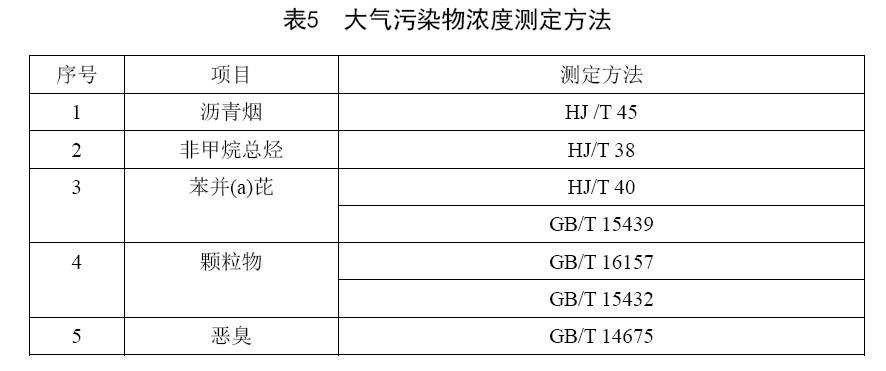 本標準大氣污染物濃度測定方法按表5執(zhí)行。