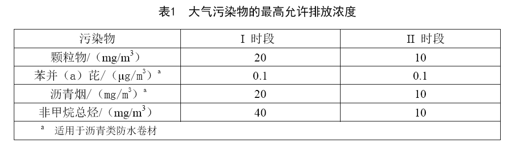 防水卷材行業(yè)大氣污染物排放標準