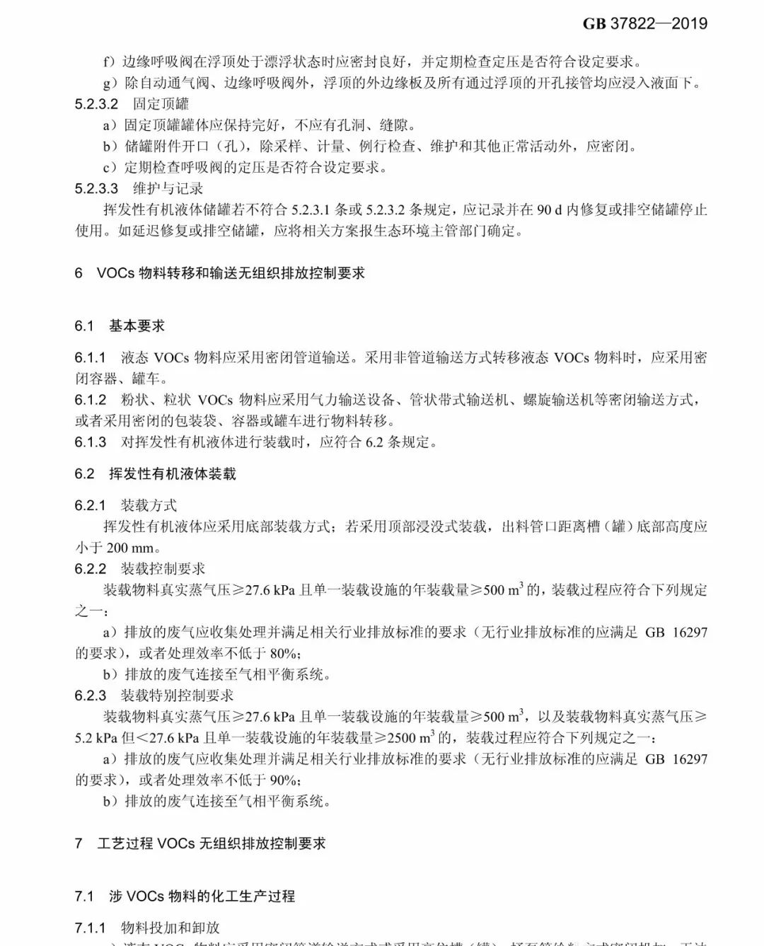 標(biāo)準(zhǔn)規(guī)定了 VOCs物料儲(chǔ)存無組織排放控制要求、VOCs物料轉(zhuǎn)移和輸送無組織排放控制要求、工藝過程 VOCs無組織排放控制要求、設(shè)備與管線組件 VOCs泄漏控制要求、敞開液面 VOCs無組織排放控制要求,以及 VOCs無組織排放廢氣收集處理系統(tǒng)要求、企業(yè)廠區(qū)內(nèi)及周邊污染監(jiān)控要求。