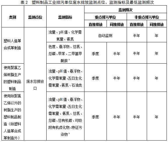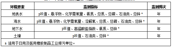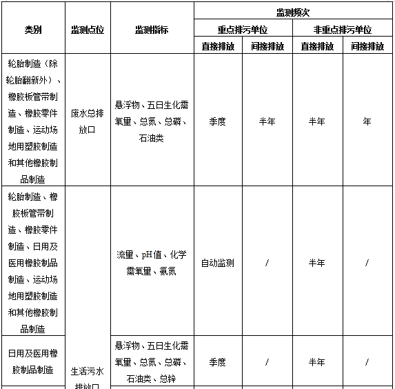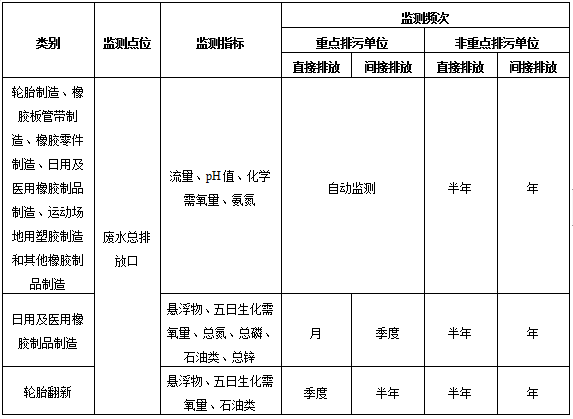 表1橡膠制品工業(yè)排污單位廢水排放監(jiān)測點位、監(jiān)測指標(biāo)及最低監(jiān)測頻次