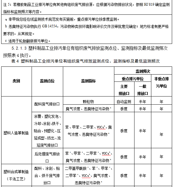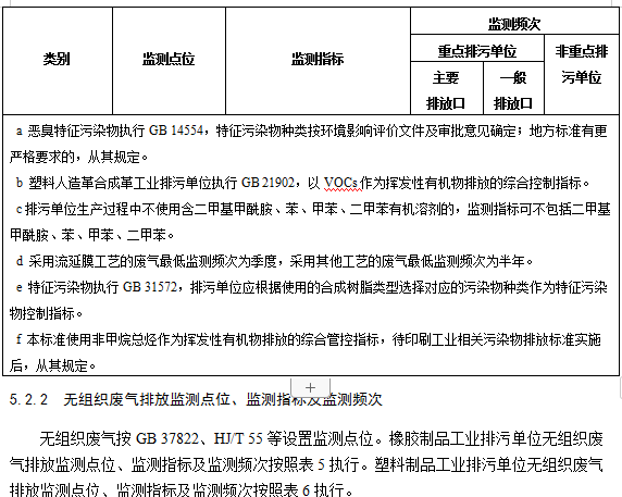 5.1.2 橡膠制品工業(yè)排污單位監(jiān)測指標(biāo)及監(jiān)測頻次