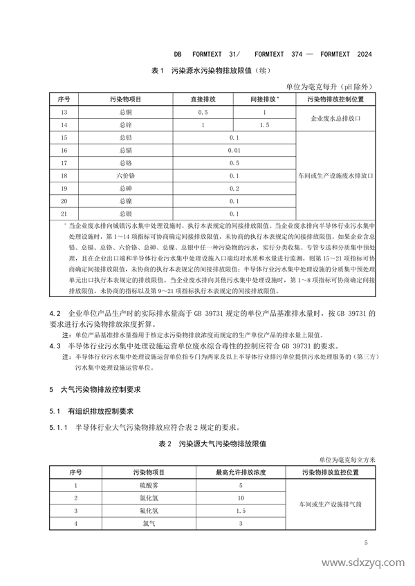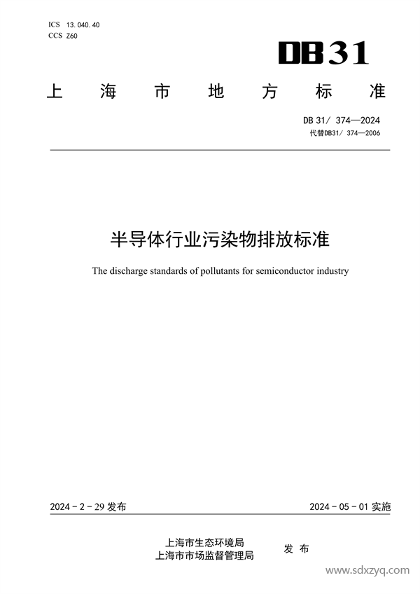 經(jīng)上海市人民政府批準(zhǔn),《半導(dǎo)體行業(yè)污染物排放標(biāo)準(zhǔn)》(DB31/374-2024)為上海市地方污染物排放標(biāo)準(zhǔn),現(xiàn)予以發(fā)布。2024年5月1日起實施。