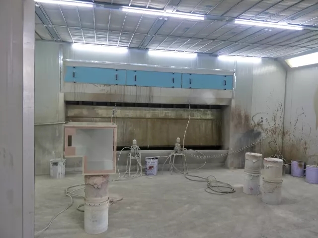 (標(biāo)準(zhǔn)的噴漆房,密閉空間且配有廢氣收集處理設(shè)施)