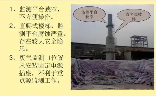 如:排氣筒的高度不夠;未設(shè)置監(jiān)測等采樣孔、采樣平臺,以及排放標(biāo)志牌的,詳見《上海市大氣污染物綜合排放標(biāo)準(zhǔn)》(DB31/933-2015)。