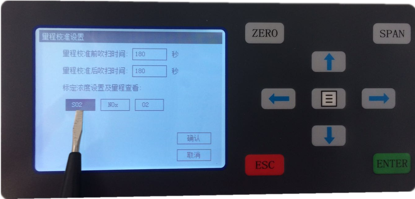 2.5 SO2標(biāo)氣濃度值設(shè)置完成,按ESC返回上一級后,選擇NOx