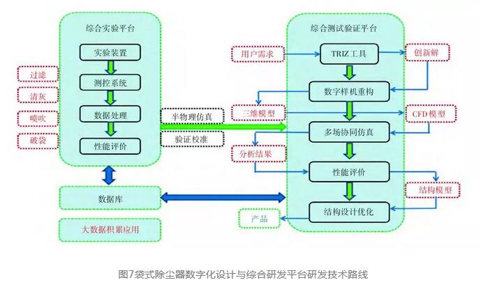 研發(fā)平臺(tái)解決了袋式除塵器產(chǎn)品創(chuàng)新的行業(yè)共性關(guān)鍵技術(shù),包括:基于國(guó)際先進(jìn)的TRIZ的集成創(chuàng)新技術(shù)、多場(chǎng)仿真技術(shù)、產(chǎn)品快捷和定制優(yōu)化技術(shù)、數(shù)字化樣機(jī)模型及重構(gòu)技術(shù)、數(shù)字化仿真測(cè)試評(píng)價(jià)技術(shù)及組態(tài)化實(shí)驗(yàn)驗(yàn)證技術(shù)等,可實(shí)現(xiàn)開(kāi)發(fā)袋式除塵器新產(chǎn)品變結(jié)構(gòu)、新工藝、新型濾材等的綜合測(cè)試實(shí)驗(yàn)。利用平臺(tái),我們已經(jīng)完成了不同基型的袋式除塵器分風(fēng)、過(guò)濾及清灰等性能的數(shù)值模擬計(jì)算、數(shù)據(jù)分析、仿真測(cè)試及實(shí)驗(yàn)驗(yàn)證,獲取了復(fù)雜需求前端對(duì)應(yīng)的數(shù)據(jù)規(guī)律。