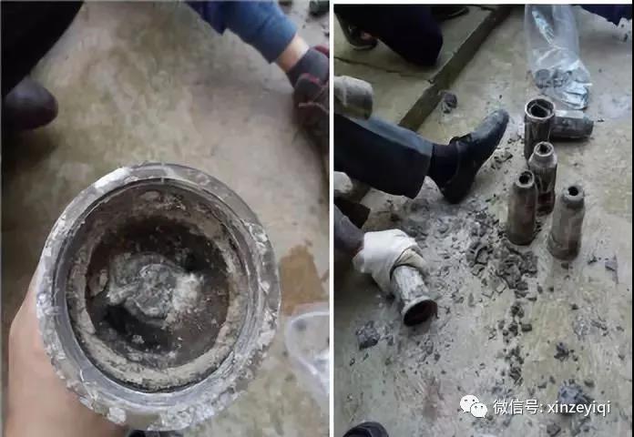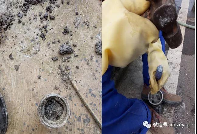針對(duì)這一技術(shù)方案,我廠先在化驗(yàn)室內(nèi)部開(kāi)展前期實(shí)驗(yàn)工作,包括除垢藥劑的選擇、除垢效果實(shí)驗(yàn)、藥劑濃度實(shí)驗(yàn)、防腐蝕實(shí)驗(yàn)等。通過(guò)化驗(yàn)室提供的實(shí)驗(yàn)分析資料顯示:采用化學(xué)清洗的方式進(jìn)行除垢從理論上是能達(dá)到一定地除垢效果。但在實(shí)際操作中發(fā)現(xiàn):噴嘴內(nèi)部結(jié)構(gòu)較為復(fù)雜;堵塞物質(zhì)堆積嚴(yán)密、厚度較厚且已形成晶形化合物,導(dǎo)致溶垢試劑在噴嘴內(nèi)部反應(yīng)效果不佳。再加之結(jié)垢物質(zhì)成分復(fù)雜,不同位置組成成分占比不同,導(dǎo)致采用化學(xué)清洗的方式,對(duì)結(jié)垢物質(zhì)中的半水亞硫酸鈣等成分能起到較好的除垢效果,但對(duì)其中氟化鈣、硫酸鈣等物質(zhì)溶解存在較大困難。從而導(dǎo)致采用該方法進(jìn)行化學(xué)清洗效果不理想。